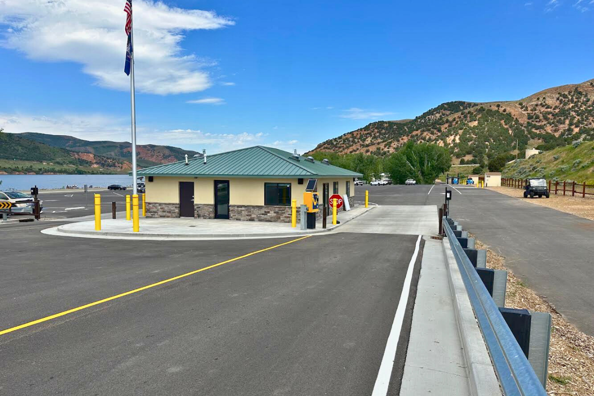 The Echo State Park – Red Rock Marina project involved the demolition, expansion, and reconstruction of the park. The project started with widening and extending the Boat Ramp by 100 feet, constructing a new entrance with a safety-focused road, and adding a bridge/tunnel for the Rail Trail. The park area was graded, providing paved parking for boats and day use. A new entrance/fee station, park offices, vault and running water restrooms with radiant floor heating, and a campground with 5 cabins and 11 full hook-ups for trailers. To accommodate the updated park new electrical, sewer, and septic systems were installed.