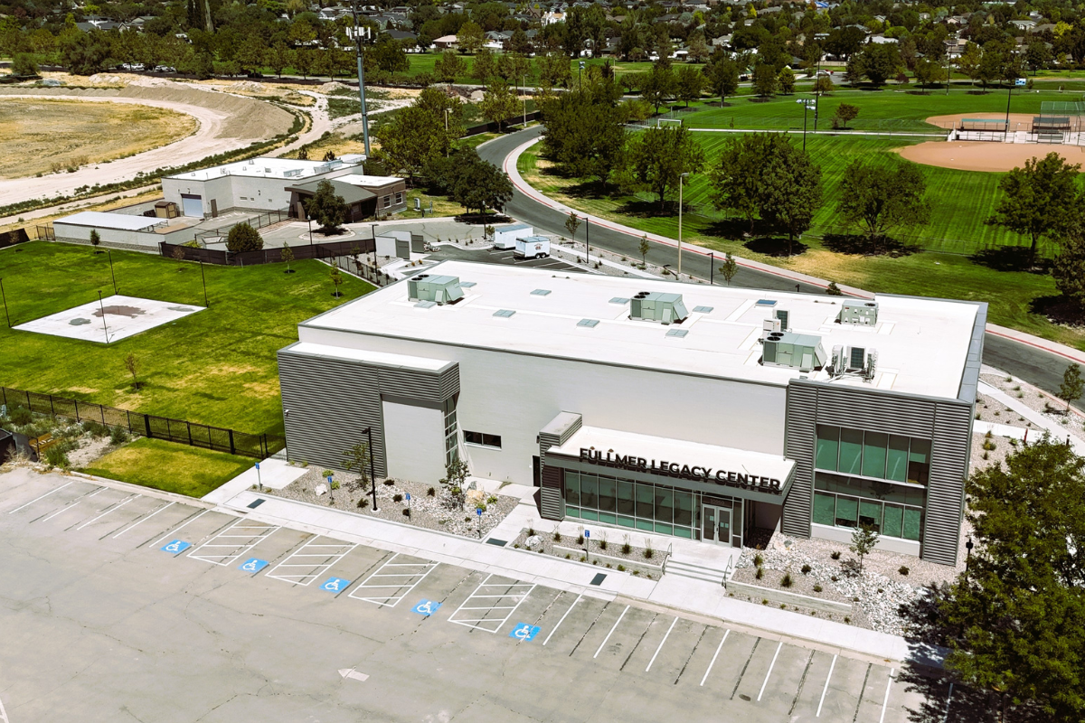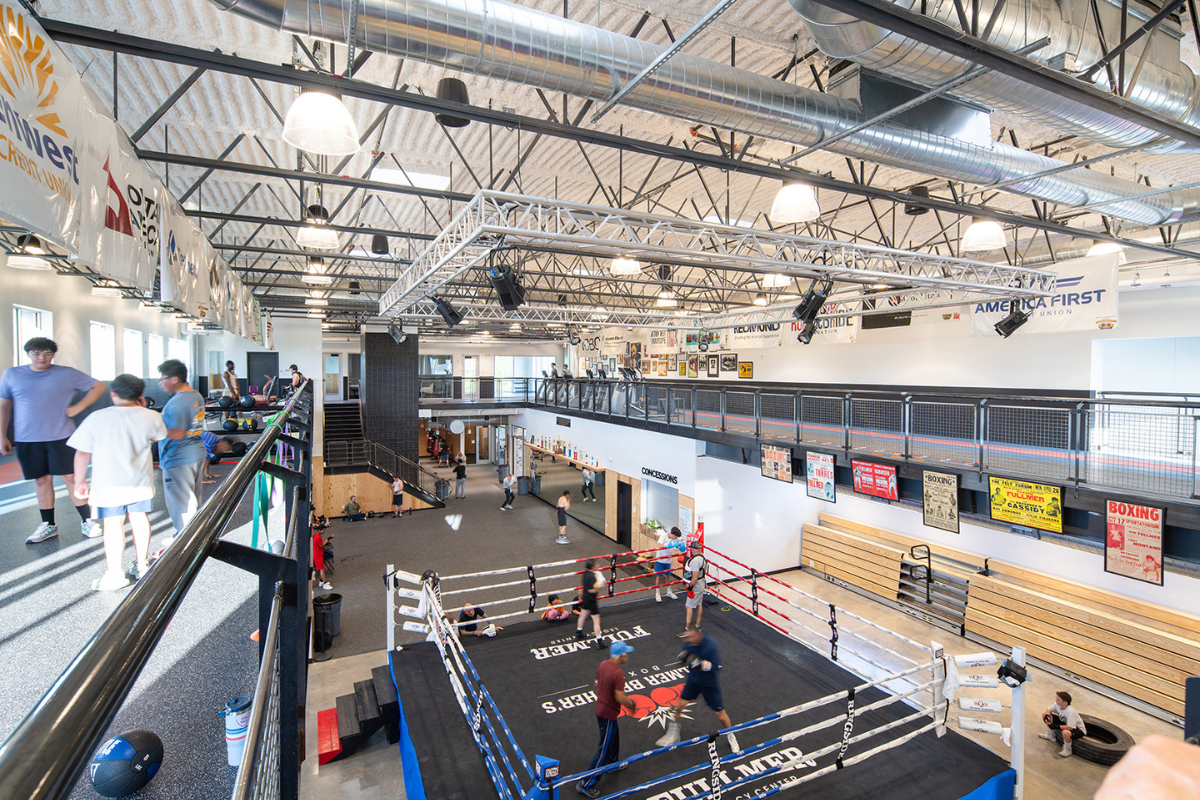 The Fullmer Legacy Center is a 16,500 SF boxing training and community facility in South Jordan, Utah. The Fullmer Legacy Foundation created the center to honor Gene, Don, and Jay Fullmer while empowering the next generation of boxers. The building brings together a full-size boxing ring and arena with mezzanine seating for events, extensive training zones with heavy bags, speed bags, and simulator stations, and an outdoor boxing ring and event terrace that extend programming into the surrounding sports park.