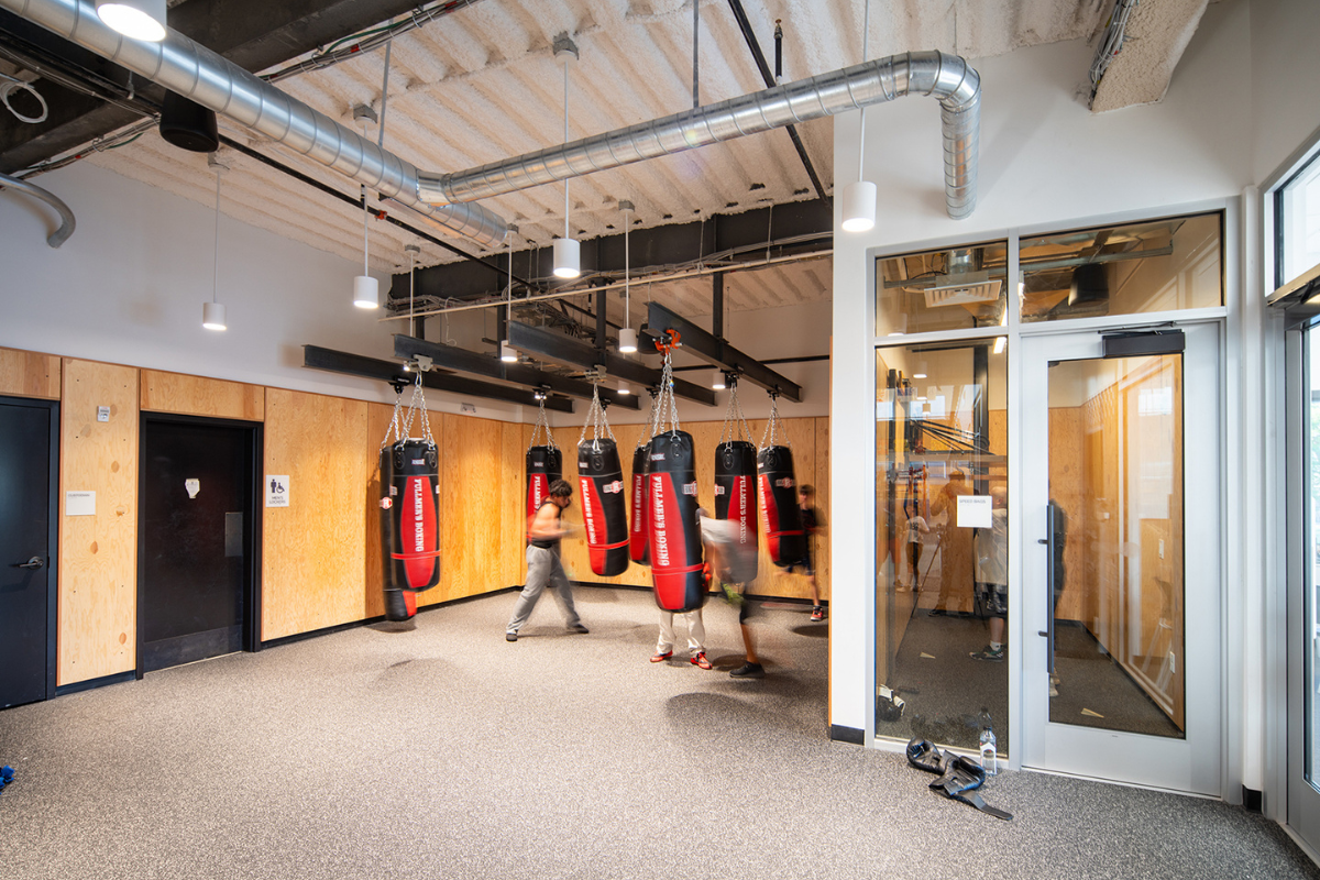 Supporting spaces including meeting rooms, exercise studios, educational support and study areas, boys’ and girls’ locker and shower rooms, and an on-site exam room reinforce the center’s mission to develop youth holistically, not just as athletes. Through collaborative fundraising, donated and discounted services, and precise construction, Gramoll delivered a safe, high-quality facility on a nonprofit budget, transforming a community vision into a permanent home for no-cost youth boxing, mentorship, and neighborhood events.