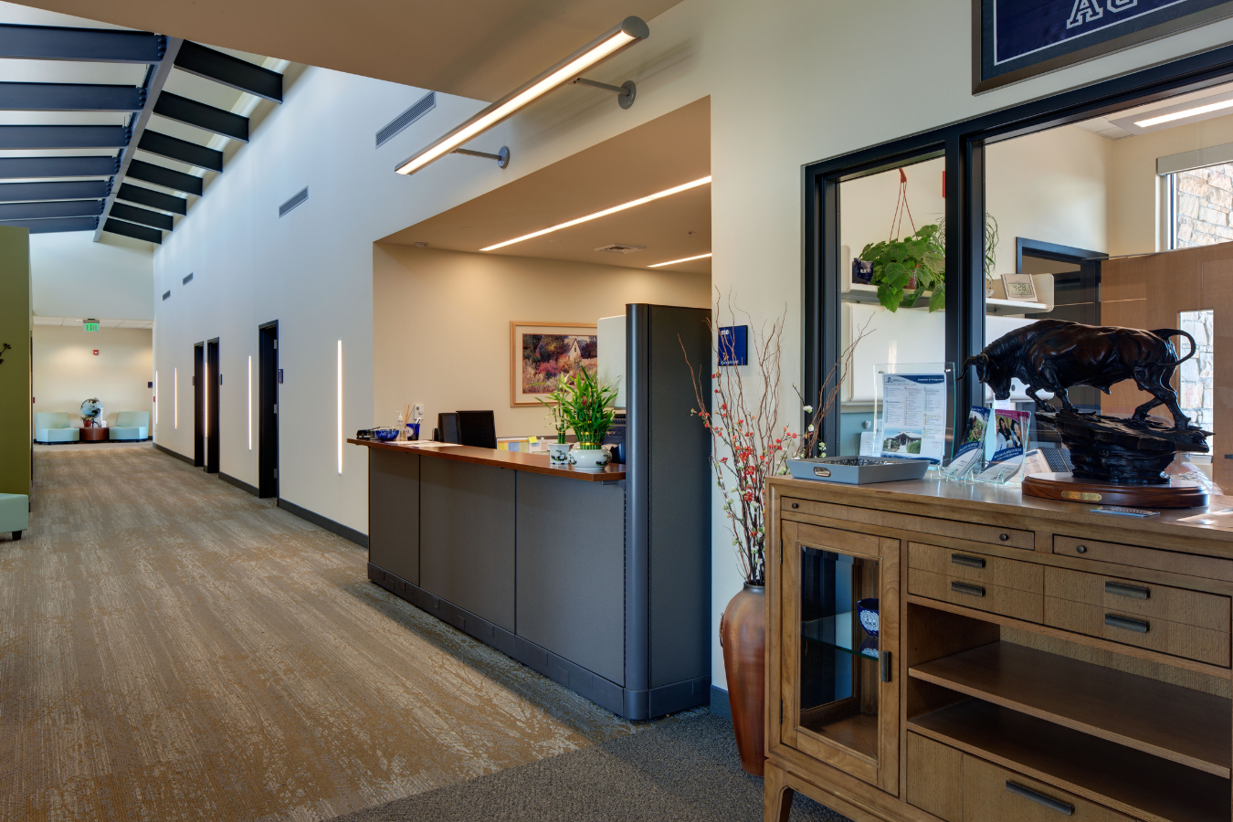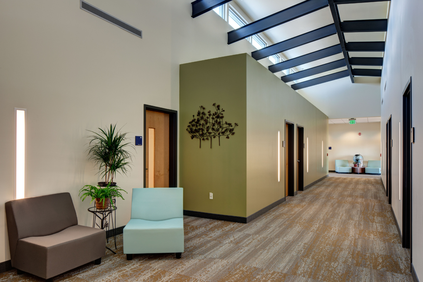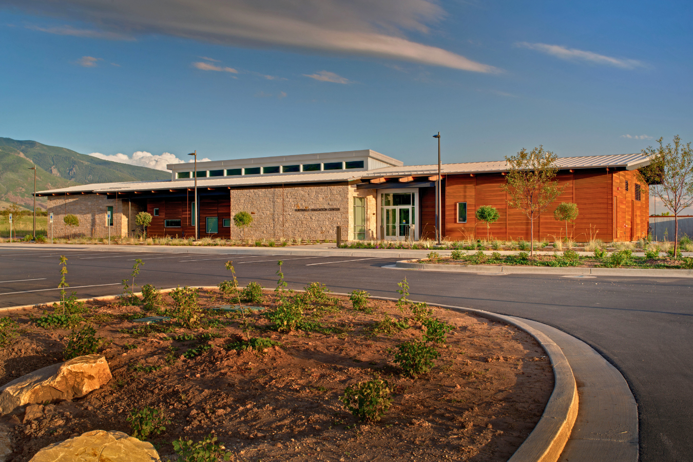 The Utah State University Kaysville Education Center is a 6,400-square-foot, LEED Silver-certified facility that anchors the Center’s master-planned campus and sets the architectural tone for future development. As the first permanent building on site, it blends modern design with the region’s agricultural heritage through its stone and siding exterior and low-slope gable roof.