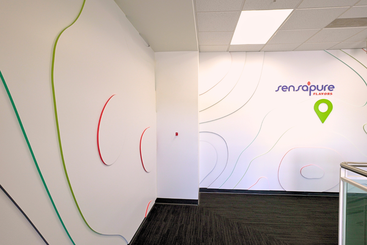 The Sensapure Remodel project was a comprehensive tenant improvement renovation designed to enhance functionality and create a cutting-edge workspace. A key highlight of the project was the installation of a state-of-the-art beverage innovation wet lab, featuring epoxy-coated flooring and walls, isolated temperature controls, and approximately 80 feet of watertight glazing. This glazing allows clients to observe lab processes while maintaining a fully hose-down cleanable environment.
