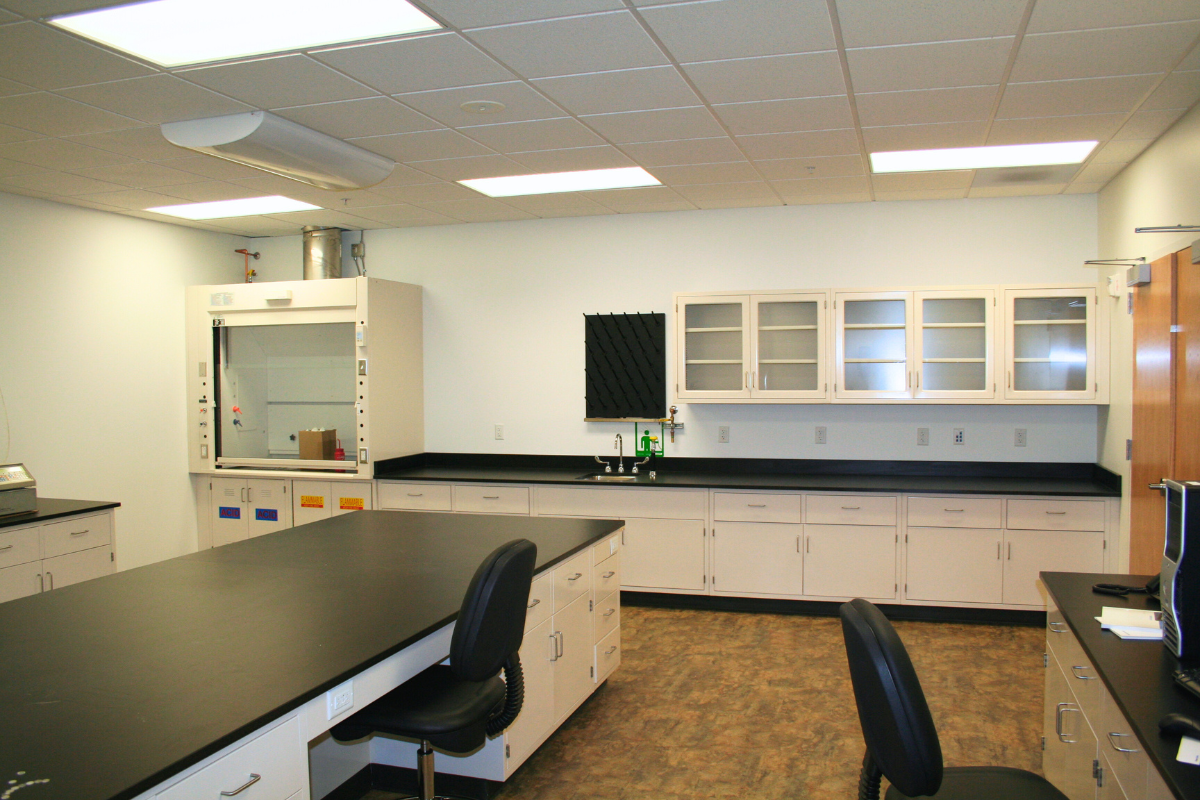 The new build-out included conference rooms, offices, open office spaces, restrooms, and a 4,400 SF high-bay manufacturing area equipped with a 5-ton crane. It also featured advanced laboratory space with four fume hoods to support TerraTek’s specialized operations. The remodeled areas included a new front lobby providing a secure entrance, a “Town Hall” meeting space, additional offices, laboratory space, a café, and additional restrooms.
