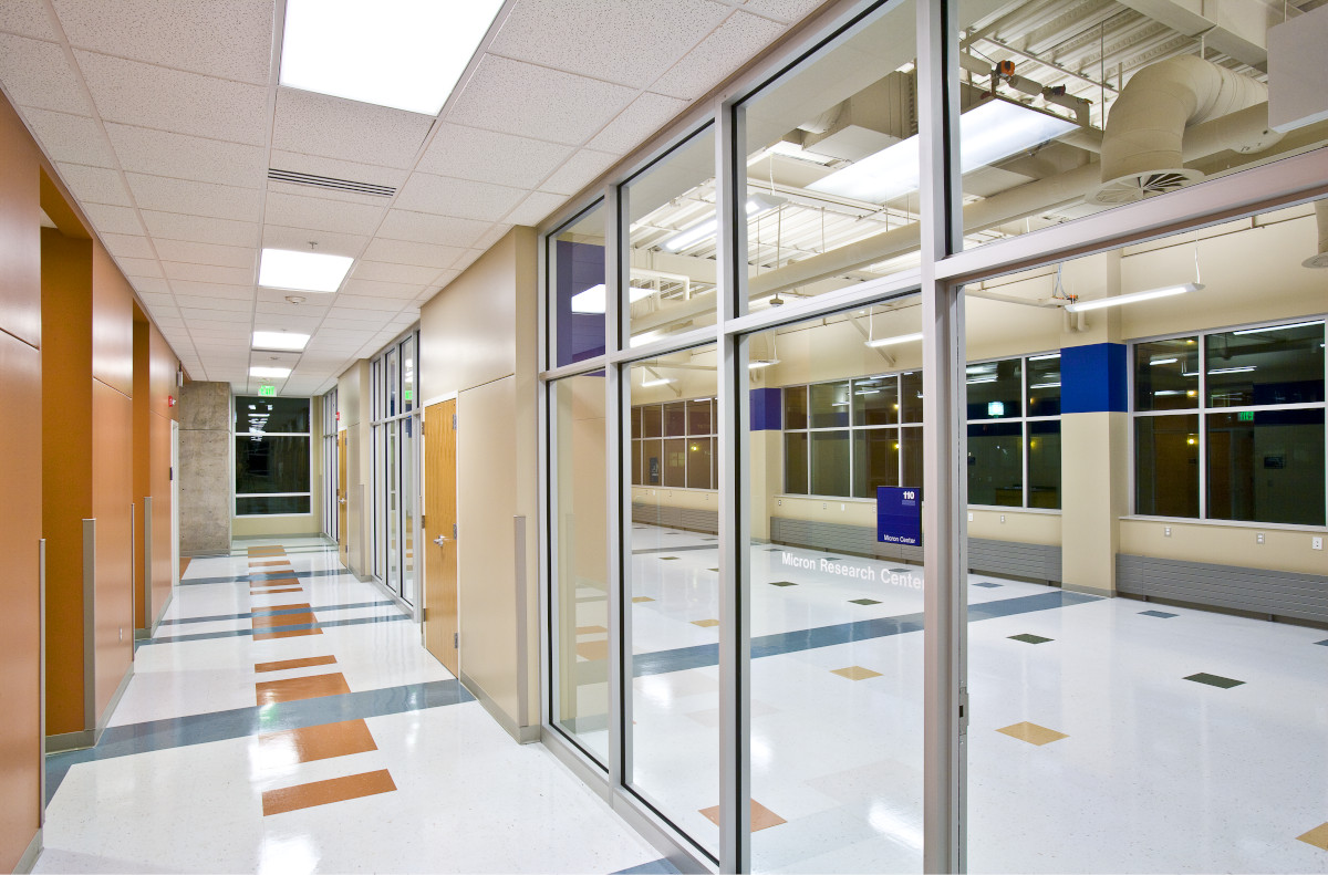 Each lab area has its own power distribution panel to allow for the future needs as grant and research funding is available. The building has a very open feel with lots of interior and exterior glass to encourage collaboration between the various engineering disciplines.